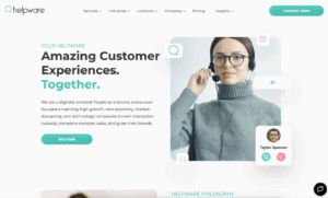 Helpware provides omnichannel customer support services with operations spanning multiple global locations, including Eastern Europe, Latin America, and the Philippines. The company emphasizes technology integration and process optimization to deliver consistent service quality across different communication channels. Their approach combines human agents with AI-powered tools for enhanced efficiency.